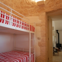 La lamiola, tipica costruzione con volta a botte, ospita un ambiente unico con divano letto matrimoniale e zona pranzo e comunica con un piccolo trullo, l’antico pagliaio, che può ospitare altre 2 persone in un letto a castello.